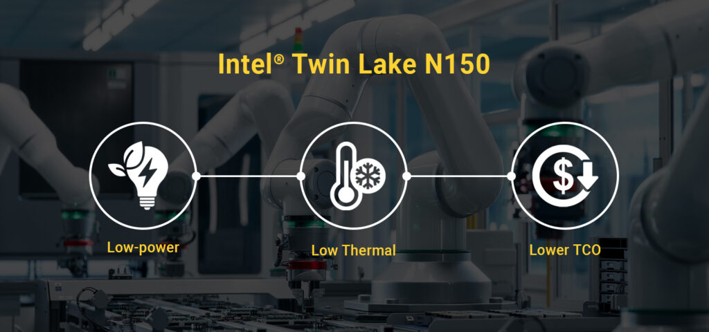Twin Lake N150 基於四個節能核心(E-cores),實現了優異的每瓦效能,其熱設計功耗(TDP)僅為 6W——比前代 Alder Lake N97 降低了 50%。這種低功耗設計特別適合工廠和零售環境中的大規模系統。藉由將 CPU 功耗減半,企業可以顯著降低能源消耗,從而降低長期的總持有成本(TCO)。